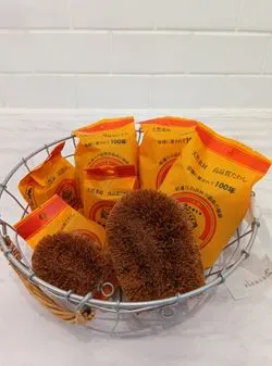 《わたしの定番品》棕櫚たわし極〆棕櫚たわしは強度と柔軟性を併せ持ち、テフロンやホーロー、木製品にも使える万能たわしです。私はせいろやおひつ洗いに、こちらのNo.6を使ってます。とても握りやすくて、隅々まで洗いやすいところが好きです!
