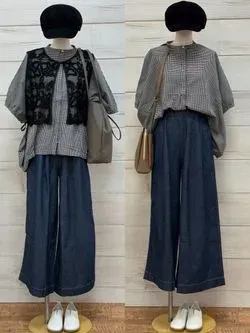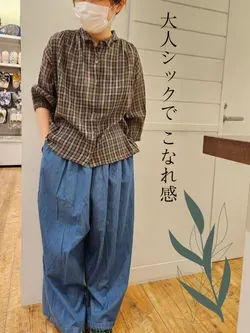 落ち着いたブラウン系のチェック柄ブラウスが主役の、こなれ感漂うカジュアルコーデ✨️ゆったりとしたシルエットのデニムワイドパンツを合わせることで、今年らしいリラックスした雰囲気を演出👍気になったアイテムがありましたら↓からクリック💡こちらから購入していただけると嬉しいです✴️♡で見逃し防止♪ぜひご活用ください♪